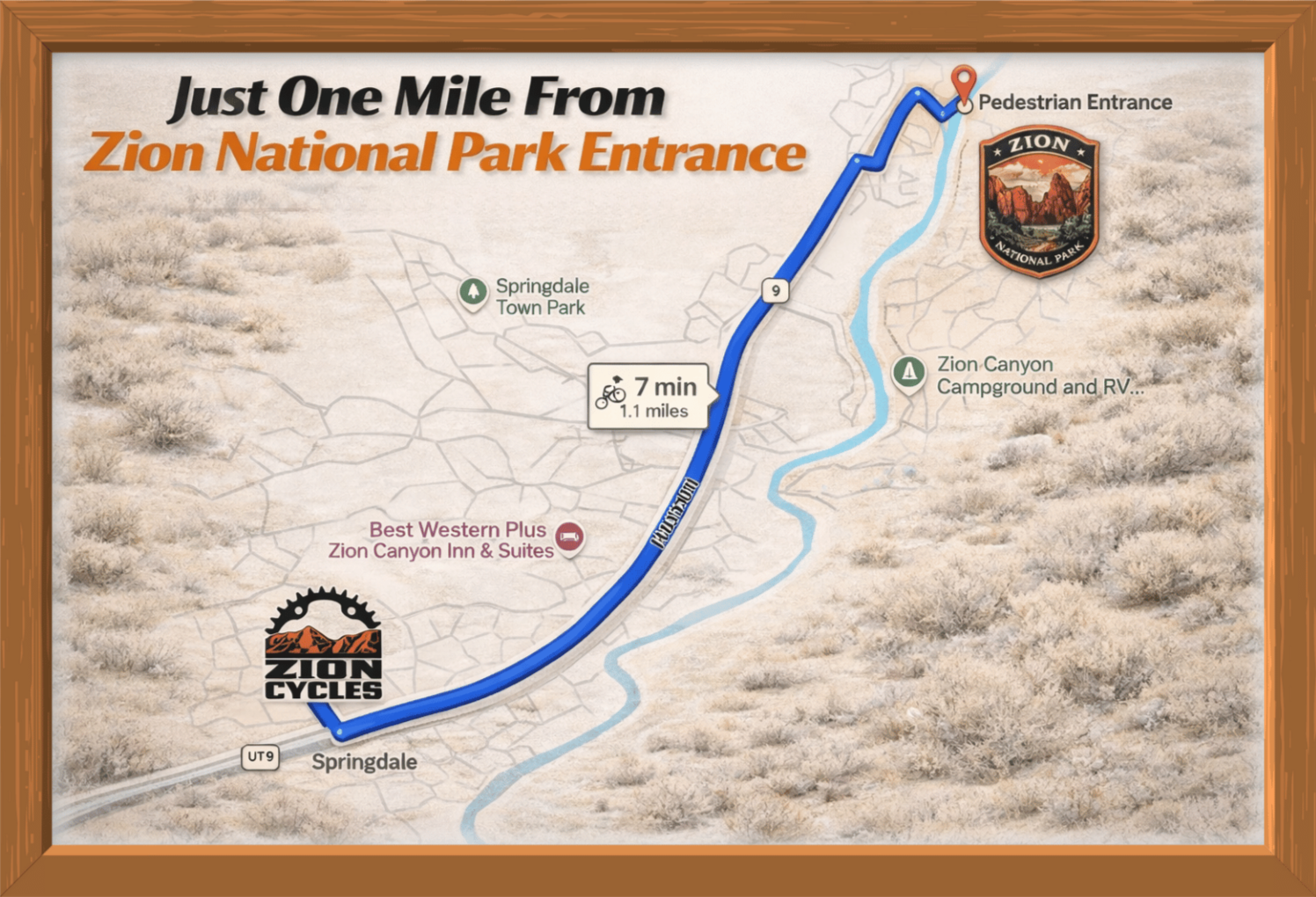 Zion Cycles is a bike shop located at the entrance of Zion National Park. We offer Zion bike rentals including regular pedal and Zion e-bike rentals to explore the canyon. We also offer gravel bikes, full-suspension, and e-mountain bikes for the local trails.